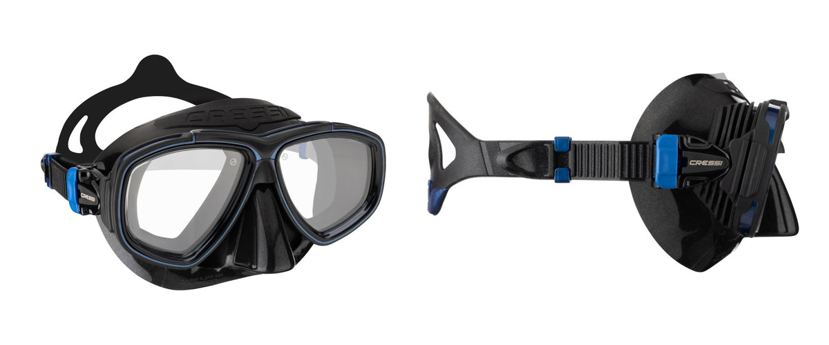 The Prisma is much more than a mask; it is a reliable companion for exploring the underwater world in full clarity. The Prisma is equipped with the Cressi patented FOG-STOP system, which drastically reduces fogging through the internal thermoregulation of the warm, damp air exiting the nose. The external part of the skirt additionally features a cooling system made of soft heat exchangers that act as radiators. This effect drops the temperature inside the mask, bringing it closer to the external temperature, and traps the droplets of humidity before the air reaches the lenses, preventing fogging. What makes the Prisma additionally unique is its ease of adjustment: The micro-adjustment buckle is connected to a soft connection point at the frame, making it easy and smooth to adjust the strap tension without any skirt deformation, which often causes water ingress. Thanks to the combination of two different frame materials and Cressi’s innovative patented soft skirt construction, the mask folds easily to fit in your BCD or cargo pocket. The Prisma offers the possibility to fit optical lenses for both negative and positive correction, allowing anyone to fully enjoy the wonders of the underwater world without compromising vision.