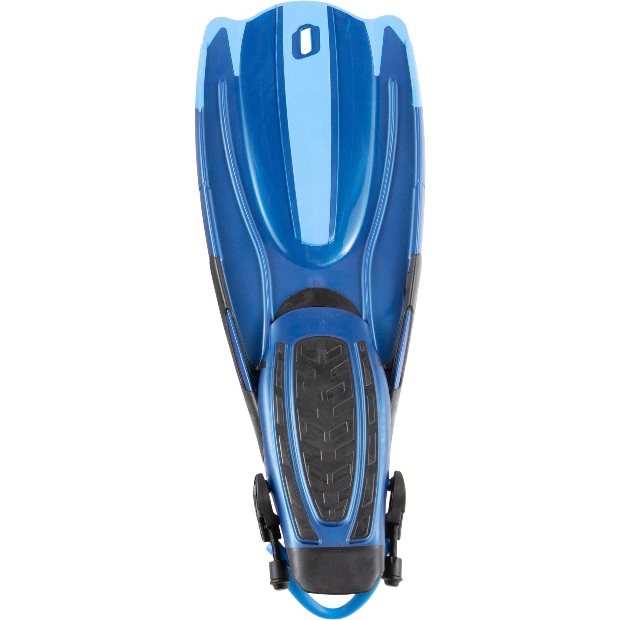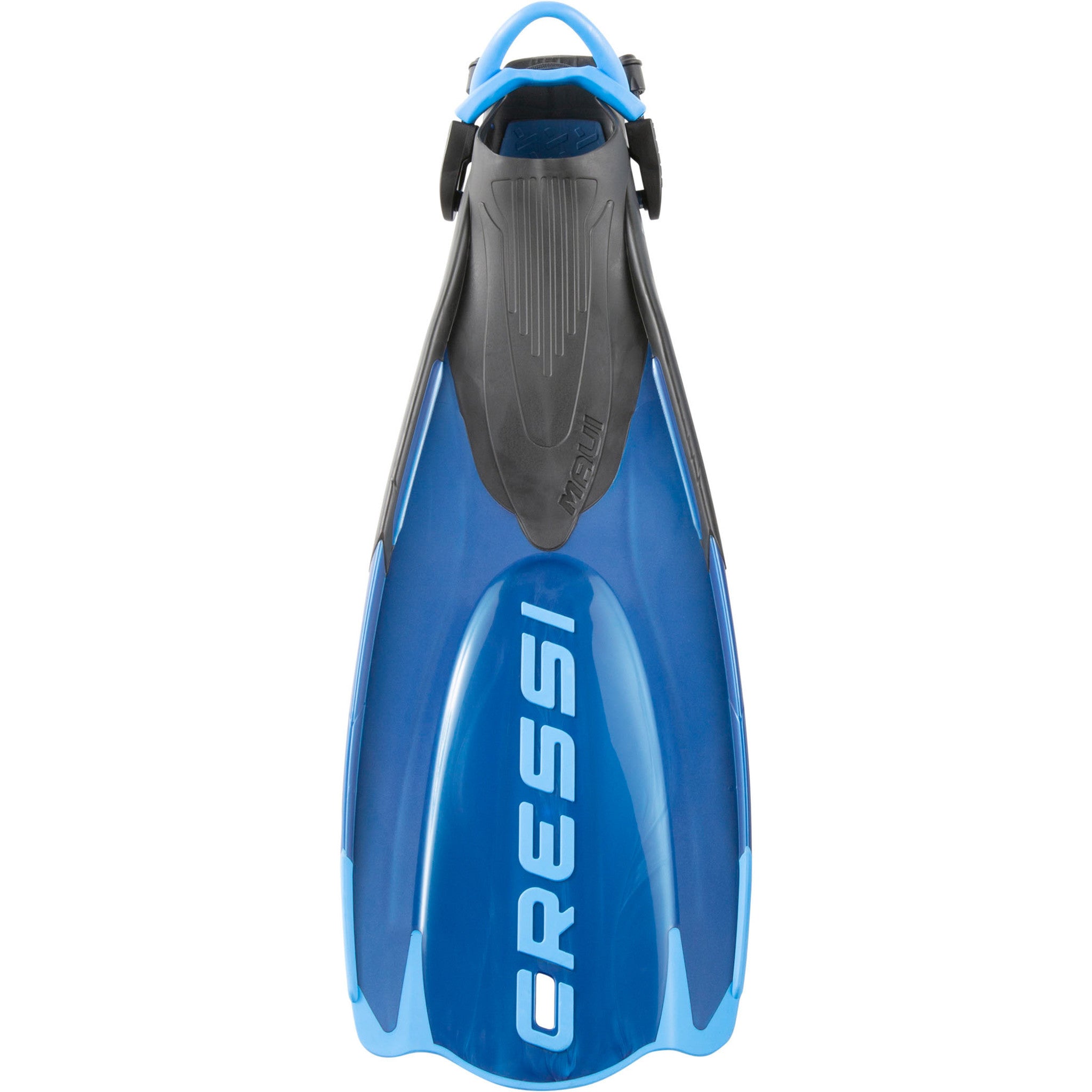 The principal characteristics of the Maui fin are lightness and ease of use, even for those without well-trained legs. Its weight and dimensions make it easy to stow, but without compromising performance. The Maui has been designed with the same sophisticated and advanced finite elements technology used for the first time on the Impulse and Sprint models. The dual material technology used for the blade means that it is substantially composed of two rigid lateral wings that direct the flow of water to the central section, where the overlaying of a softer and more elastic material makes it more flexible. In this way the blade flexes to create a “spoon effect”, thereby contributing considerable propulsive force. The fin can be used barefoot or with light socks. The fabric covering of the EBS strap prevents the perishing of the elastic elements. The heel piece is in soft, anatomical rubber. The grab handle for fitting the fin wraps around the ankle so as to reduce protrusion and avoid chafing while swimming. Even though the EBS (Elastic Bungee Strap) itself permits great adaptability and makes donning the fin particularly easy, we have fitted a cleat to the elastic strap to permit further adjustment. This function permits the user to obtain micro-adjustments – depending on whether they are wearing a sock or not – or simply to loosen or tighten to ensure the foot is held firmly in place but without excessive pressure.