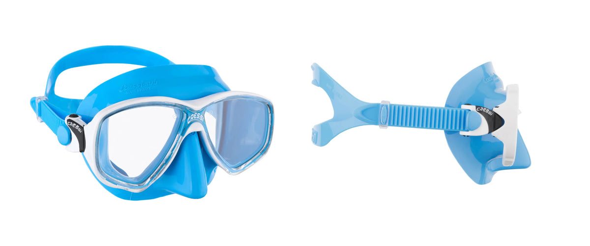 Designed for adult divers, the Marea mask gives an exceptionally wide field of view. Ideal for scuba diving and snorkeling. The Marea features separate lenses, a skirt edge that accommodates most face shapes, and a compact inner volume, making it ideal for scuba divers and snorkelers alike. The lenses are made of tempered glass and treated with an anti-fog solution. The mask is equipped with Cressi's Micrometric Easy-Adjust Buckles and features a wide silicone strap, designed for even pressure dispersion to ensure a secure fit and increased comfort. It features an Easy-to-Reach one-hand nose pocket for ear equalization, which can be utilized even when wearing thick gloves.