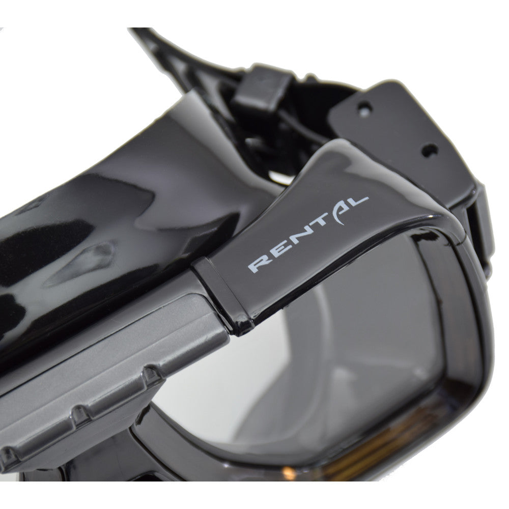 A mask particularly suitable for free diving and snorkeling, but just as appropriate for use in scuba diving. It has separate lenses, a skirt edge that adapts to most face and a small inner volume, perfect for free-divers. It is made from soft transparent or dark silicone and comes with strong rapid action buckles to adjust the strap. Features a reinforced frame and a universal strap size. Over the frame the wording "Rental" makes easy to recognize the mask from the others.