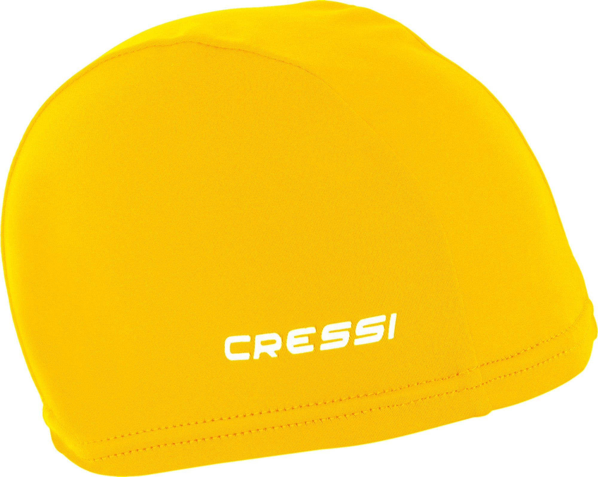 Super-stretch swim cap perfect for swimming and snorkeling. This lightweight swim cap made with a super stretch fabric for enhanced comfort. The material dries quickly and offers UV protection. The fabric is comfortable for any hair length, eliminating pulling or snagging. The elastic band at the base ensures a tight fit.