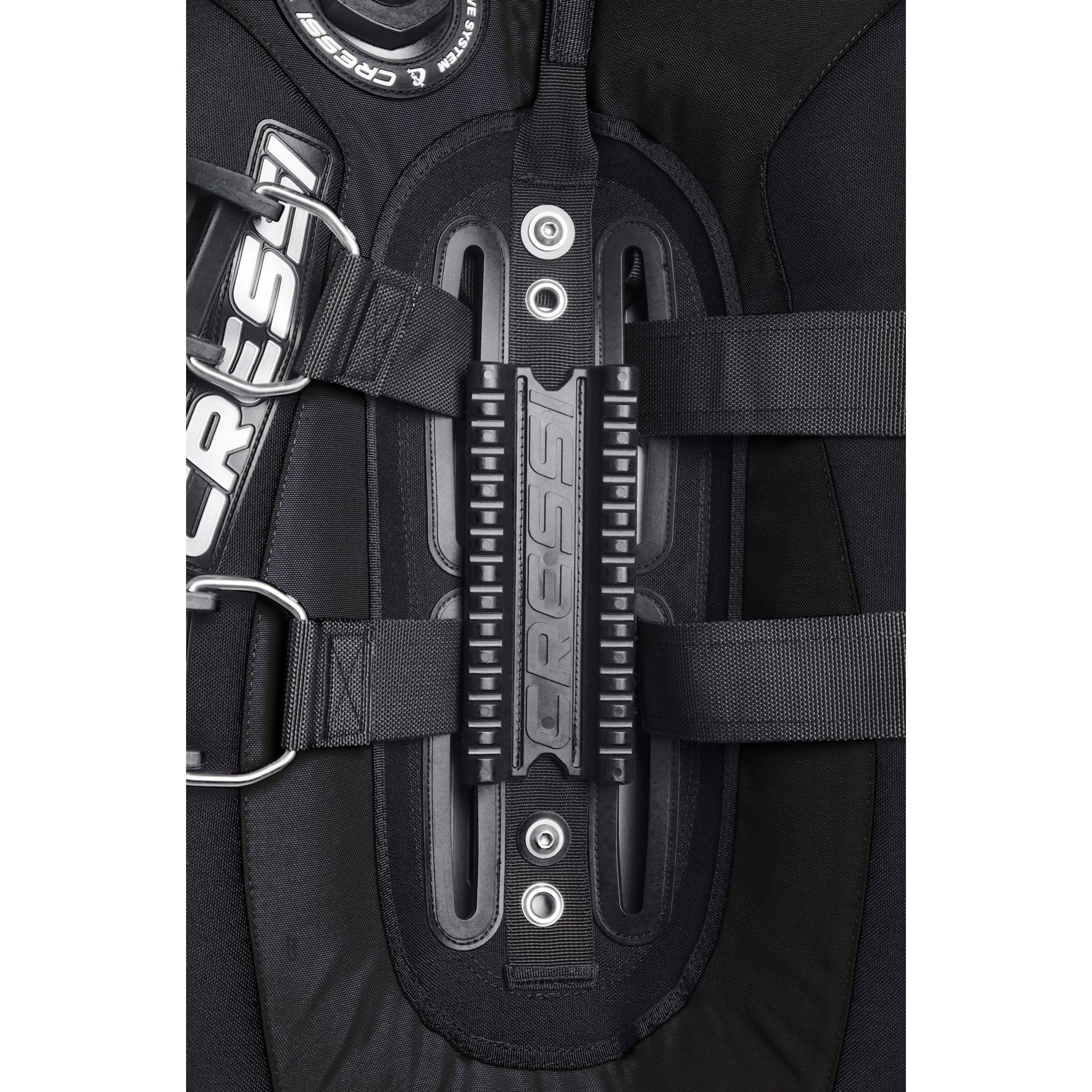 Aquawing is the one-size donut jacket designed to adapt to all anatomies (male and female) using the new patented MAS (Modular Adjustment System): in fact, the single 50 mm belt that embraces the shoulders and waist can rapidly adjust to your size. The shape of the air bladder is designed to ensure perfect buoyancy with a mono cylinder. The anodized light alloy backplate reduces the overall weight of the jacket while guaranteeing stability and safe use. The special cylinder rest in thermoplastic rubber integrated with the back of the jacket guarantees the positioning of the tank for optimum trim. The shoulder straps and back cover are made with an air-net material to enhance comfort and improve water drainage. The back cover is equipped with a special pocket designed to house the decompression buoy.