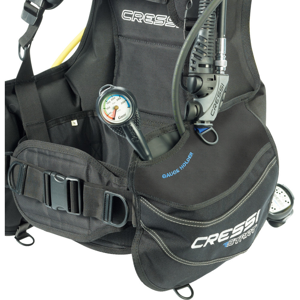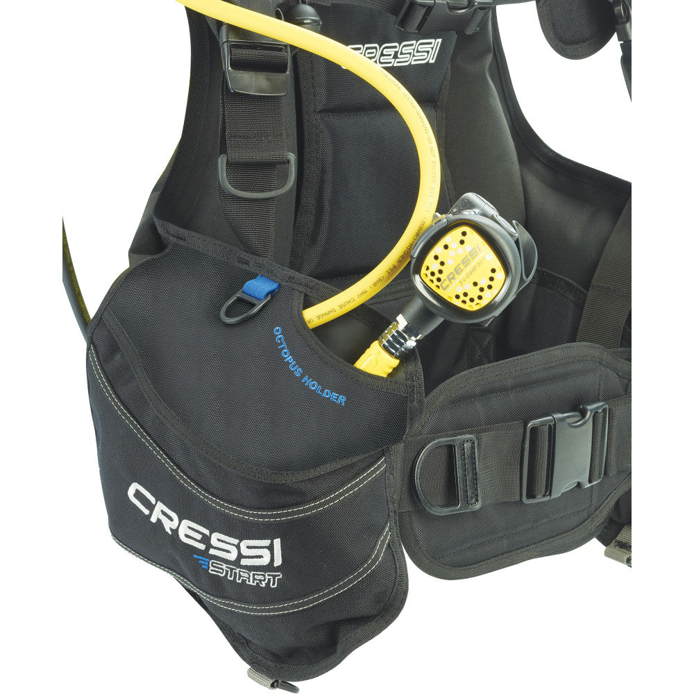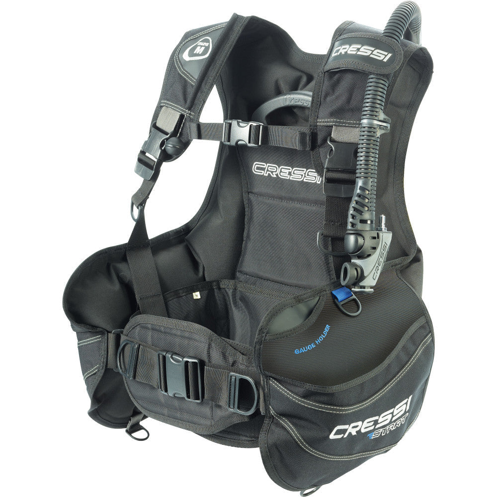 The Start is the ideal BCD (buoyancy compensator device) for beginners and dive centers where the jackets are often inflated to their maximum capacity. The size is clearly visible on the shoulder strap. Made in resistance 1000 Denier Cordura (outside panel) and 500 Denier (inside layer). The Denier Nylon Cordura is more resistant to erosion caused by long-term friction and extends the duration of the weldings, as it is harder than Nylon. The waist strap is independent of the air bladder. The strap can be tightened while the jacket is deflated without squeezing the diver's stomach when the jacket is inflated. Inflator with a double air filtration system; under the hose connection stem and around the valve. The inflator can easily be rinsed to remove sand and other debris. The backplate system is made by ultra-durable thermoplastic truly small and compact for lightness. A rubber damper help grips the tank, a second tank strap can be added. A nylon locator strap is included to ensure proper tank positioning every time. 3 exhaust valves for buoyancy adjustment in any position. 2 large pockets cargo pockets with Velcro closure. On top of each pocket, there is a compartment for hold the pressure gauge and the octopus. 1 technopolymer D-rings of 32mm available at the bottom of each pocket for attach various accessories. Extraordinary lift capacity ratio thanks to its new pattern and the separators installed inside the bag: XS: 13.3 kg | S: 14.3 kg | M: 15.3 kg | L: 17.3 kg | XL 20.4 kg. CE Certification EN 250 – EN 1809.