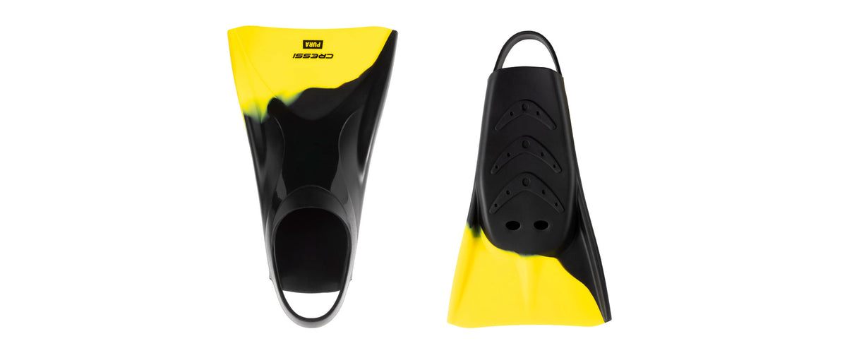 The Pura fins are ideal for swimmers to explore the underwater world and to improve with swimming skills. Made of silicone, the fins are versatile and comfortable to wear. As a result, socks are not needed when wearing the fins. The design of the fins are for swimmers to increase strength in the abdominal and lumbar area. This also provides training the legs and ankles of the swimmer. Overall, the Pura fins are a perfect fit in the Cressi swimming fins line and are a great choice for young swimmers.