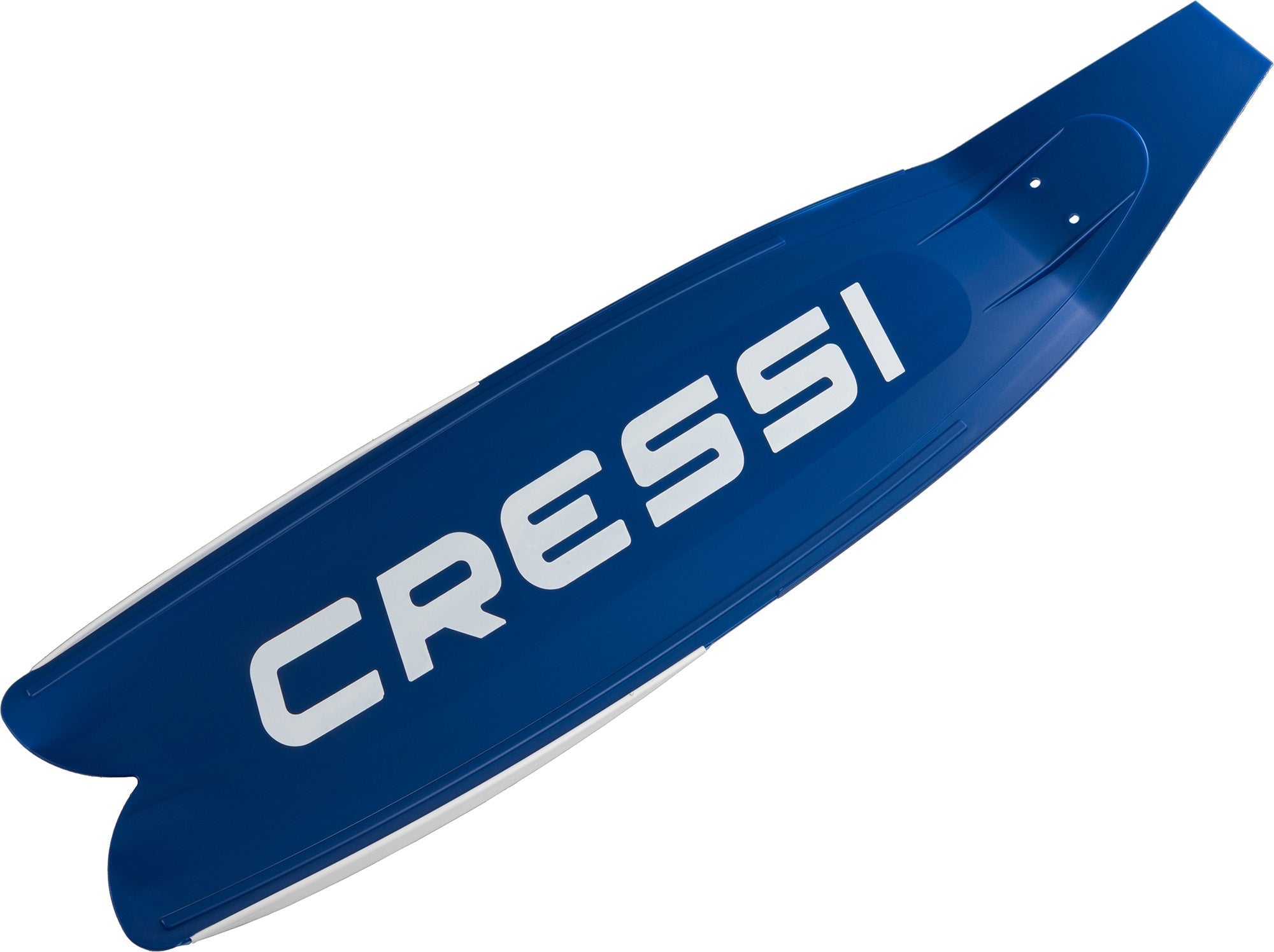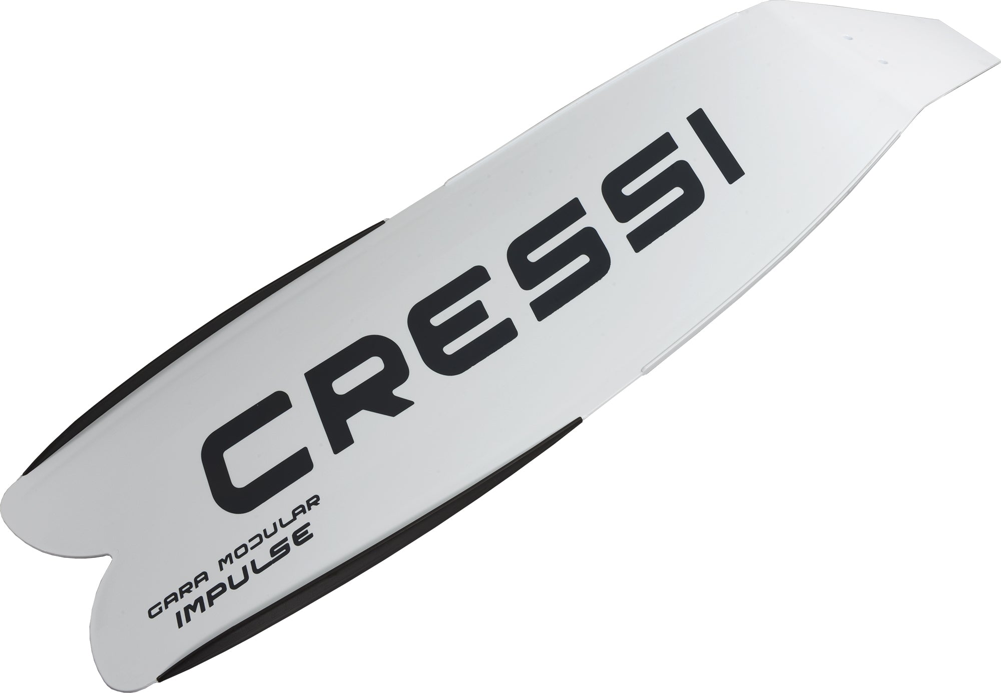 Blade replacement for long Cressi Gara Modular Impulse freediving fins. The Gara Modular Impulse Blade is made of high-modulus propylene (2500 Mpa). The blade is made of long-lasting material, very reactive, and highly elastic return. It incorporates two little antiskid spoilers on the final area. The decreasing thickness section (from 4mm to 2mm) causes the highly progressive tonnage eliminating the skid tendency because the first half of the set is more rigid and the final half is more flexible. The Impulse blade features an angle of 29 degrees, providing the ultimate in efficiency during the kick cycle requiring less energy.