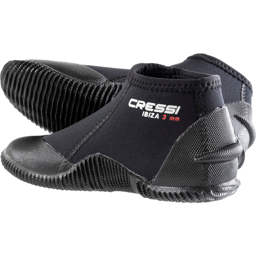 The Ibiza 3mm are lightweight boots ideal for outdoor sports and travel. They are suitable for surfing, kayaking, scuba diving and a variety of water sports. Made with super elastic neoprene, these boots are built to provide maximum comfort and durability. The back of the heel has been specially designed to fit perfectly with open heel fins for scuba diving. The small ridge is used to prevent fin straps from slipping. A strong non-slip molding covers the entire sole. Rinse with clean water after use and let it dry.