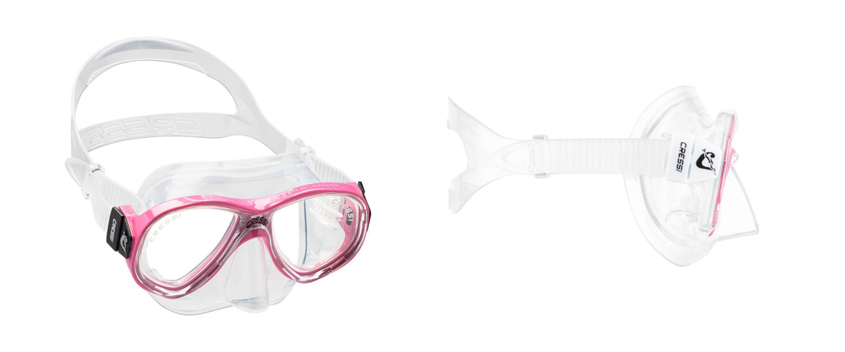 The Perla Junior is the small size of the Perla for adult. It is a 2 windowed mask particularly suitable not only for snorkeling but also for scuba diving. It has dual tempered glass lenses, a double feathered skirt edge that adapts to most faces, and a small inner volume that is perfect for going deep underwater. The Perla Junior is made from high quality sealing soft silicone that offers extraordinary and unprecedented comfort and fit. The mask is equipped with micrometric buckles for easy adjust the strap length. Thanks to the silicone nose pocket it is easy to equalize the pressure even wearing thick gloves. Safety Warning: do not dive headfirst or jump into the water while wearing the mask! The lenses are not designed to withstand this kind of impact or other undue forces and may shatter, possibly causing injuries.