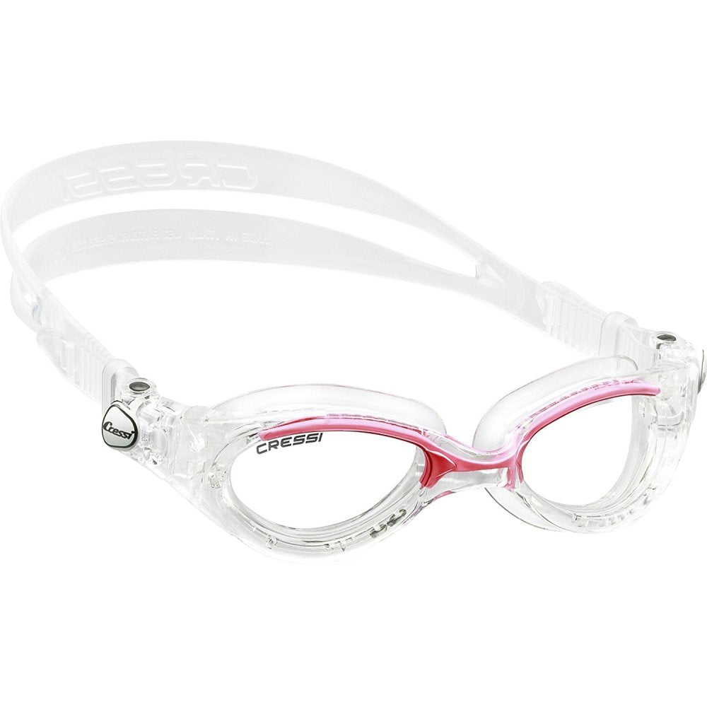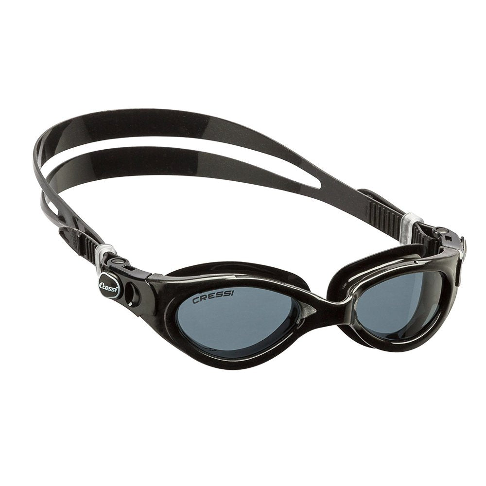 The Flash Compact goggles are characterized by an elastic nose bridge, which allows for perfect adaptability to a large number of facial profiles. The lenses are slightly inclined at 18° to follow the natural shape of the human face and increase the field of view. They are also shatterproof and offer UV ray protection. An internal anti-fogging treatment prevents fog during use. The nose gasket is made with hypoallergenic, high-quality TPR to ensure comfort and a perfect seal. The double-strap is made of silicone to ensure a perfect fit without over-tightening. The Cressi-patented buckle system makes adjusting the strap effortless. Easy replacement of strap and buckle system. The Flash are versatile goggles, ideal for recreational swimming and competition, as well as both indoor and outdoor use.