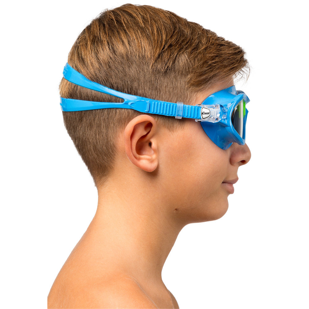 The Mini Cobra is designed for kids aged around 7 to 15 years old to swim and enjoy the sea. They are goggles made in Italy with silicone, better and longer-lasting material than plastic PVC. This material is more comfortable and perfectly fits most facial profiles.