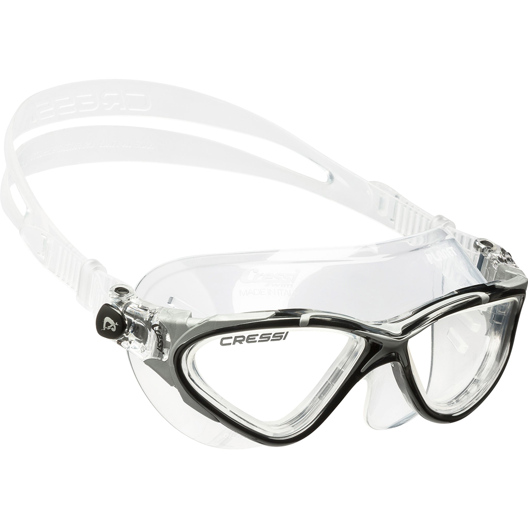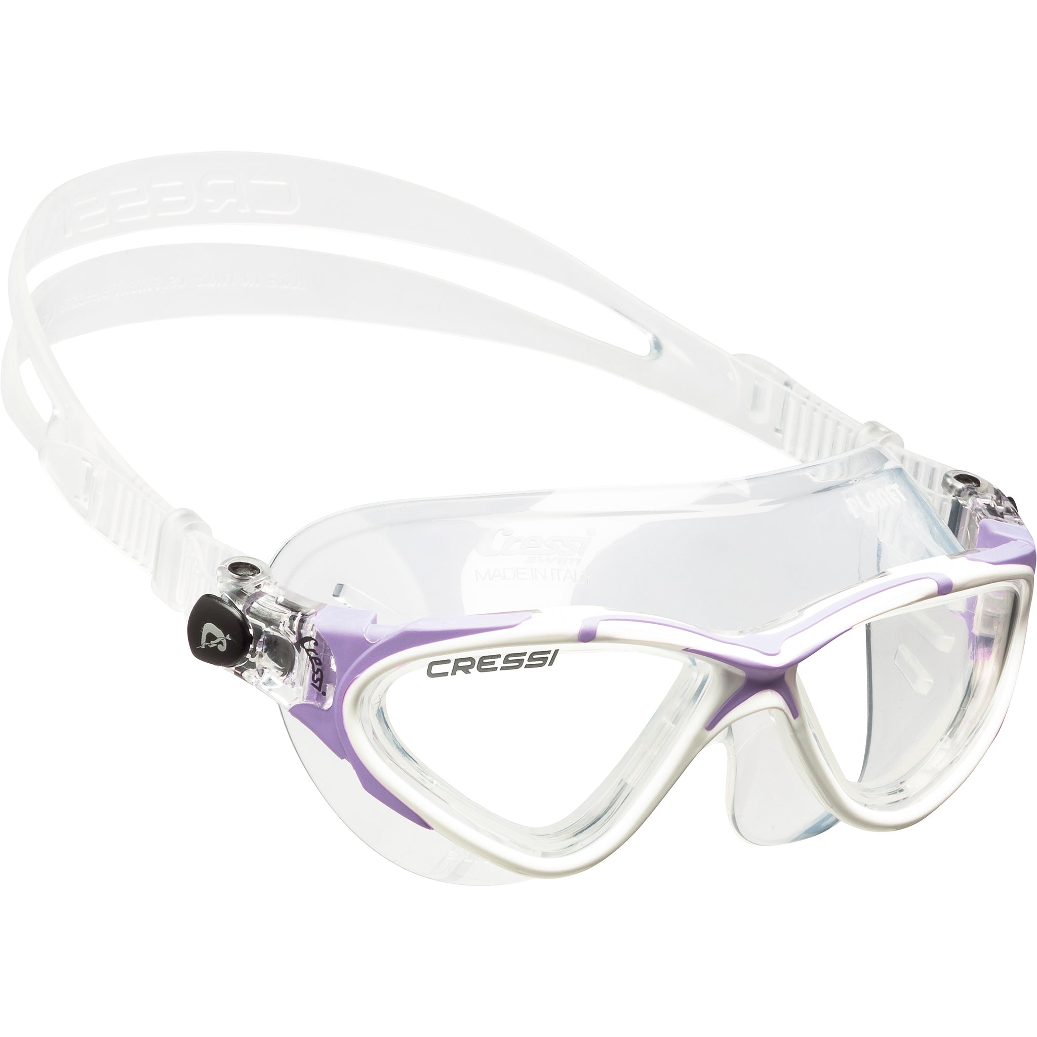 The Planet swim mask has an innovative frame design, unique to Cressi. This silicone mask features wide lenses, ensuring maximum comfort without the irritation of a regular goggle. The innovative shape of the frame delivers a maximized peripheral view. The lenses are manufactured with an internal anti-fog treatment, are scratch-resistant, shatterproof, and 100% anti-UV. The silicone strap provides a secure and stable fit on the face for long periods in the water. Our patented easy-adjustable buckle system has made it among the very best, for many years. If you are looking for the ultimate swim mask in the market, the Planet is the mask for you. Ideal for recreational and open-water swimming.
