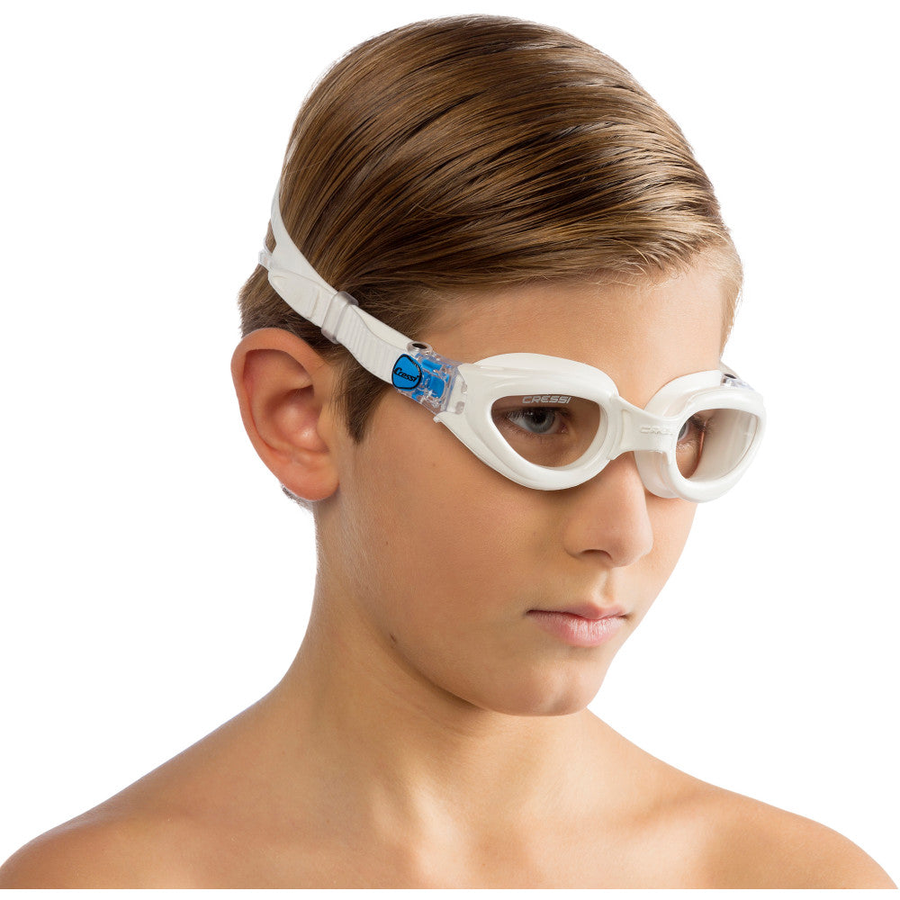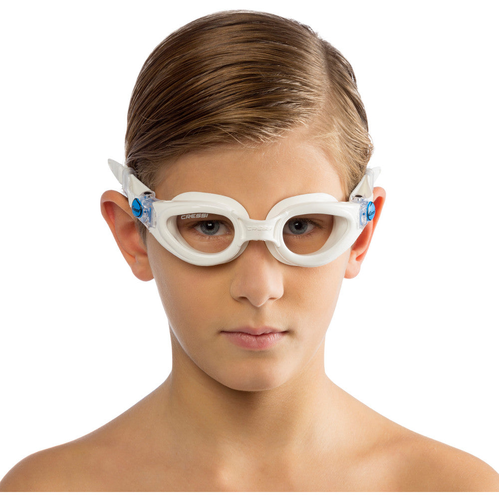 The Rocks are designed for young swimmers that need comfortable swim goggles for prolonged use. They feature a classic round lens shape that is also slightly curved for excellent peripheral vision. Lenses feature external anti-scratch treatment, UV protection and internal anti-fog treatment. TPR gaskets around the lenses form a comfortable, watertight seal. 100% hypoallergenic silicone strap for maximum comfort and fit. Strap and buckles are interchangeable with all other Cressi goggles and masks in the swim line. Offered in a variety of colors and lens tints, including a mirror lens version with black silicone.