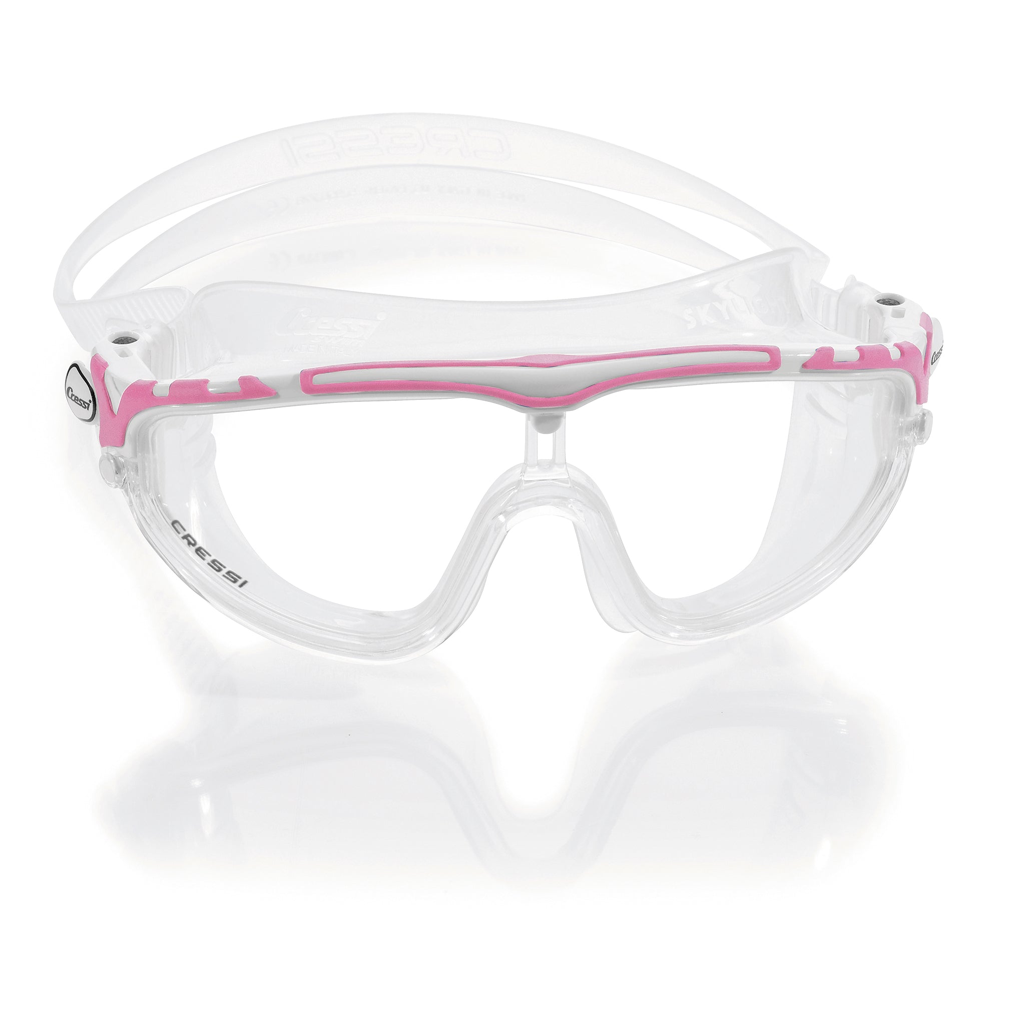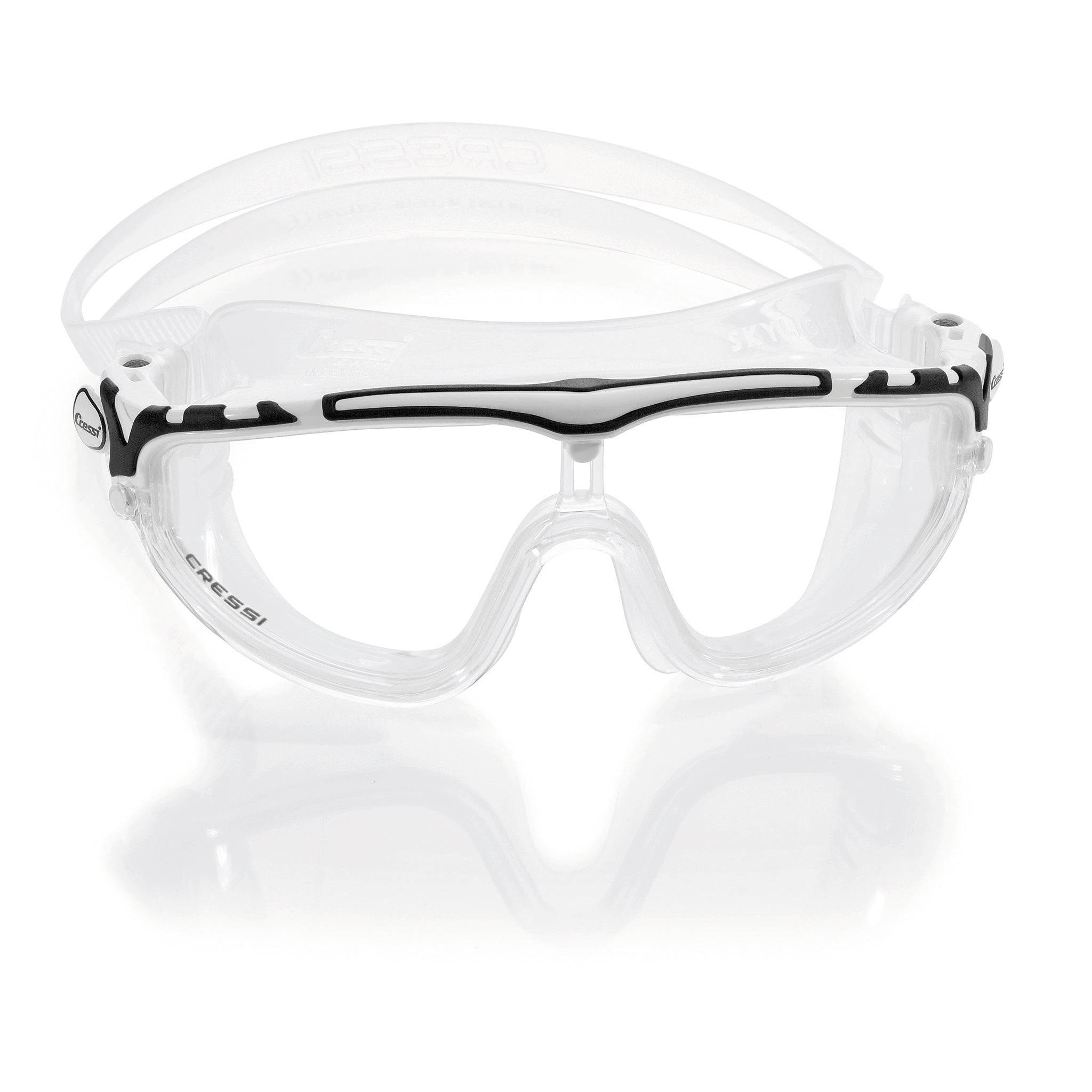 The Skylight swim mask has an innovative frame design, unique to Cressi. This mask uses mono-lens technology, ensuring maximum comfort without the irritation of a regular goggle. The innovative shape of the frame delivers a maximized peripheral view. The lenses are manufactured with an internal anti-fog treatment, are scratch-resistant, shatterproof, and 100% anti-UV. The lenses are available in the mirrored and tinted versions, perfect for outdoor use. The silicone strap provides a secure and stable fit on the face for long periods in the water. Our patented easy-adjustable buckle system has made it among the very best, for many years. If you are looking for the ultimate swim mask in the market, the Cressi Skylight is the mask for you.