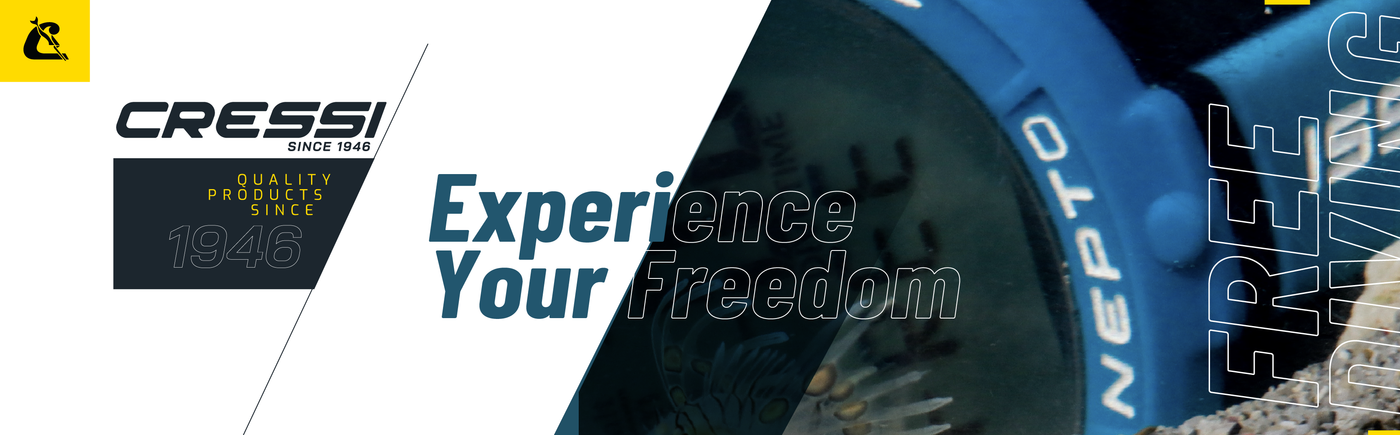 With a case diameter of only 48 mm and a high-contrast display of 35 mm, Nepto is an extremely compact watch-computer specific for freediving. This innovative product boasts an algorithm developed in Cressi, which protects the freediver from the risk of Taravana, and a function that avoids the risk of pulmonary edema. Mineral glass, a heavy-duty case with steel buttons for resistance to water pressure up to 120 m | 393 ft, rubber strap with stainless steel buckle. The software is designed to be easy to use and the information is displayed in a clear way. While underwater the computer shows the dive time, the maximum depth reached the surface time, the water temperature, and the speed. It allows setting customized alarms for the surface time and for the depth. The algorithm calculates the recovery time and advises when is possible to submerge without the risk of Taravana. Up to 8 levels can be set to increase Taravana's risk protection. The Nepto features another important protection, against the risk of hemoptysis during high-depth dives, called Bloodshift, indicating different warm-ups to perform before the depth diving. It's possible to set if the diving will be performed in salt or freshwater. Possibility to schedule the next tide in case of diving in the ocean or sea. The computer advise also the freediver when is recommended to be hydrated. The computer stores the dives in the log that can be downloaded using the Cressi BT Interface (sold apart). It's possible to set the sample rate, from 0.5 up to 2 seconds or to turn it off. The computer works also as a normal watch, showing the time, the date and it allows to set a timer and to use it a chronometer. It's possible to deactivate the Free mode while using the computer in a pool for swimming or when snorkeling. The user can switch easily between metric and imperial systems. The dive computer can be linked to a smartphone using the BT Interface (sold separately). It communicates with the dive computer via an IR connection. Use the Cressi app (available for Android and iOS) to download diving sessions and monitor training. The device is powered by a long-lasting CR2450 button battery which can be replaced by an authorized Cressi center by verifying perfect watertightness.