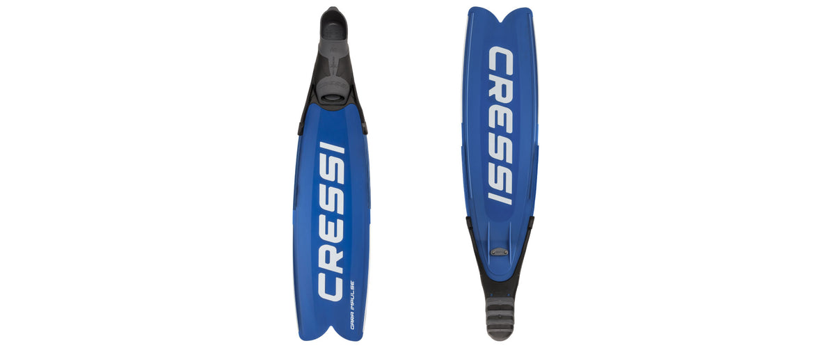 The Gara Modular Impulse Turbo is an ideal fin for intermediate to advanced free diving and spearfishing. Following Cressi's recent Impulse project Cressi has successfully transferred the same design parameters resulting in this innovative S-shaped fin. The particular movement the blades permit is from a notable accumulation of elastic potential energy in the blade, which is released in the return kick, transforming into thrust. Therefore, you are using less energy to kick for longer and further distances. The modular design lets the user interchange blades for specific diving purposes, which makes this the perfect fin to grow with, as the diver can change blades as their skills increase. Any Cressi polypropylene, fiberglass, or carbon fiber long blade will interchange in minutes without any modifications to the foot pocket. The thermoplastic rubber used for the water channeling rails and is extremely flexible and soft, as not to undermine the intrinsic characteristics of the blade. Included with the pair of fins ae the Gara Modular insoles. The new insole for Gara Modular fins is recommended for use with thin boots in temperate waters, because it improves the kick performance. The semi-rigid material of the insole is completely recycled. The insoles are supplied as a pair (right and left foot) and can be cut into their shape in three different sizes, according to pre-printed guidelines.