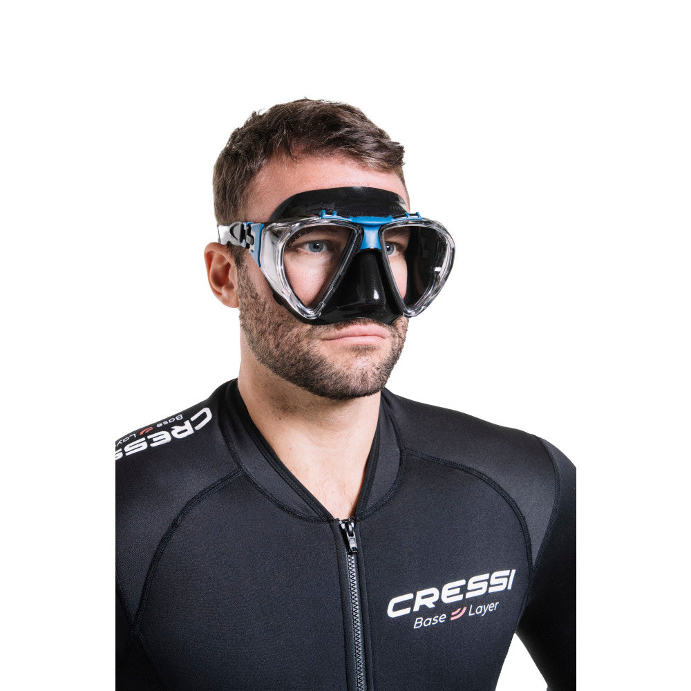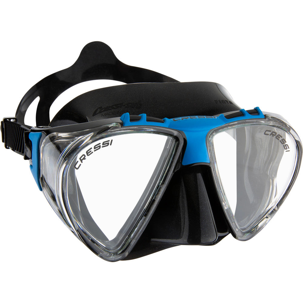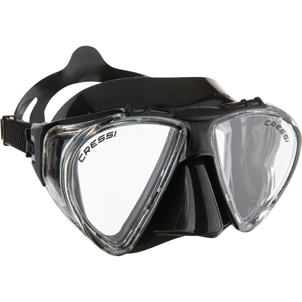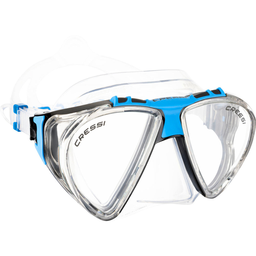 The Cressi patented system of raked lenses with an "inverted drop” shape offers incredible downward visibility, ideal for having under control the scuba diving equipment.