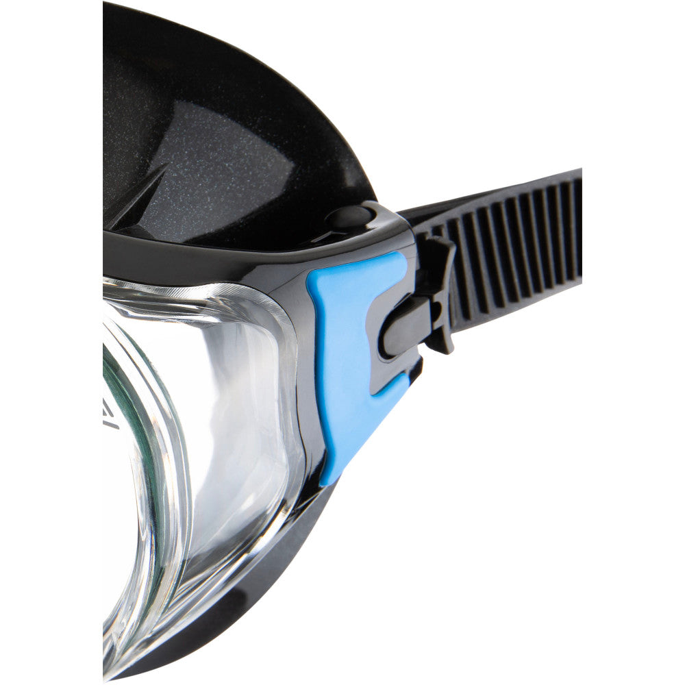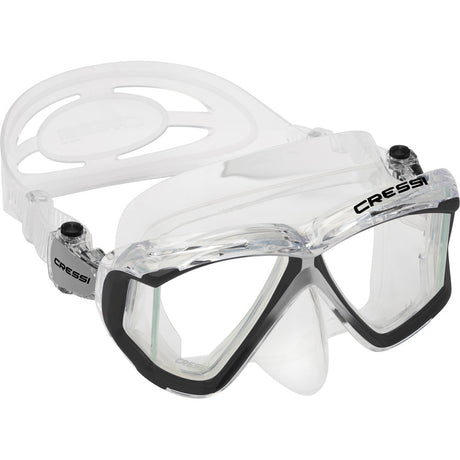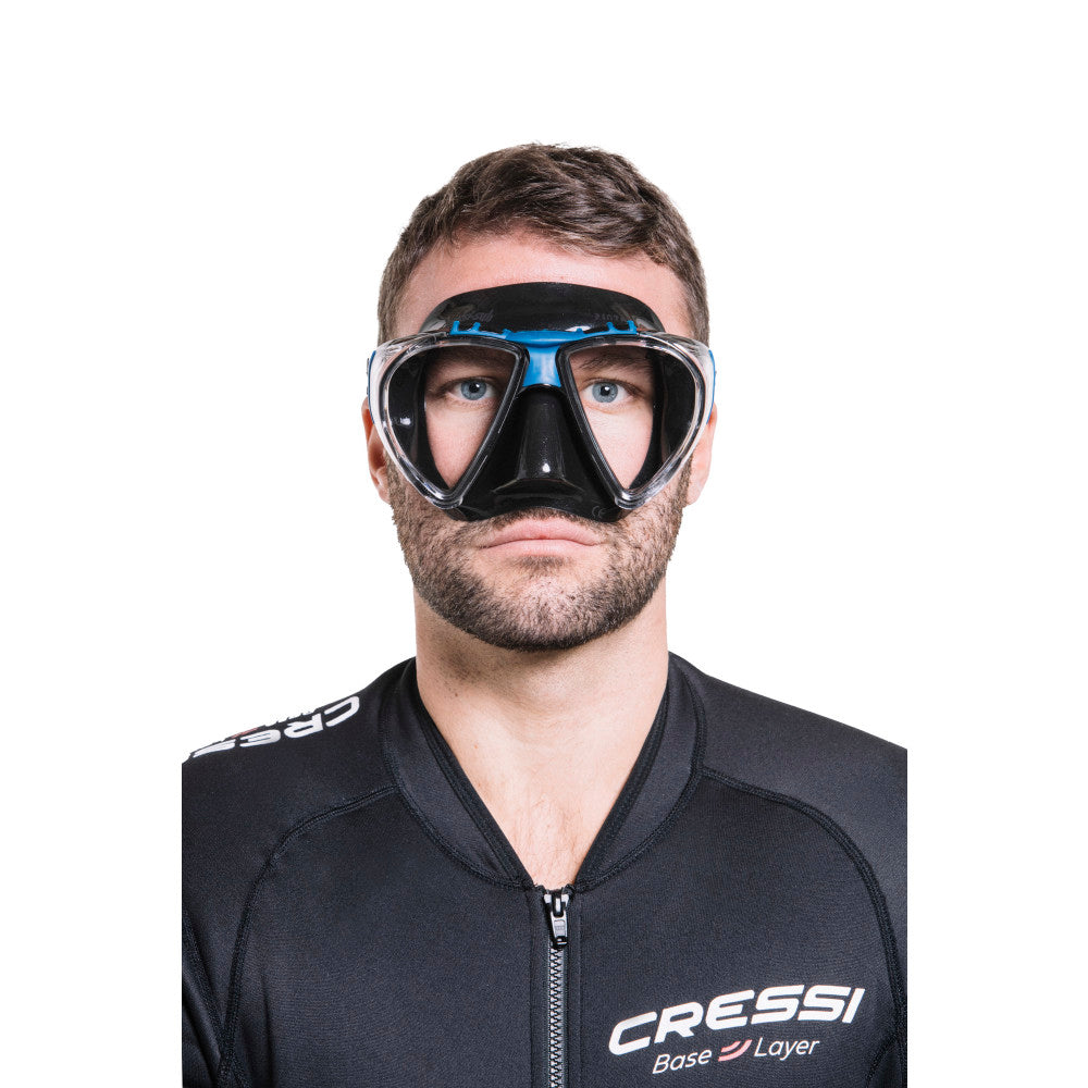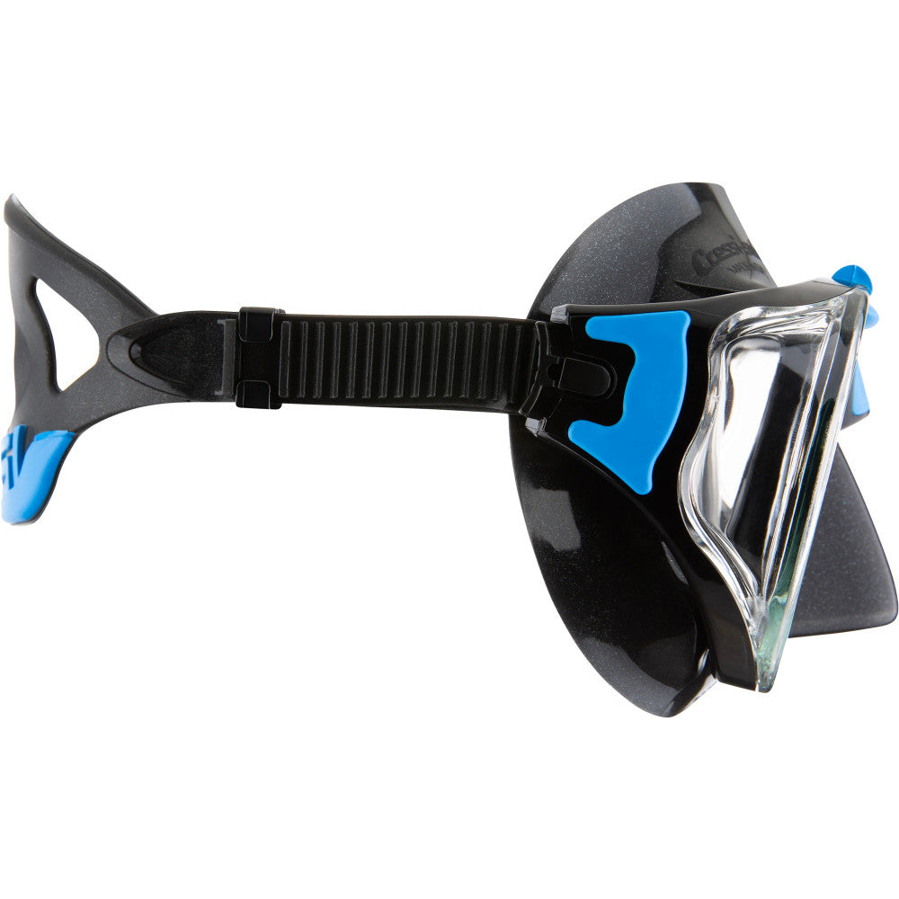 The Cressi patented system of raked lenses with an "inverted drop” shape offers incredible downward visibility, ideal for having under control the scuba diving equipment.