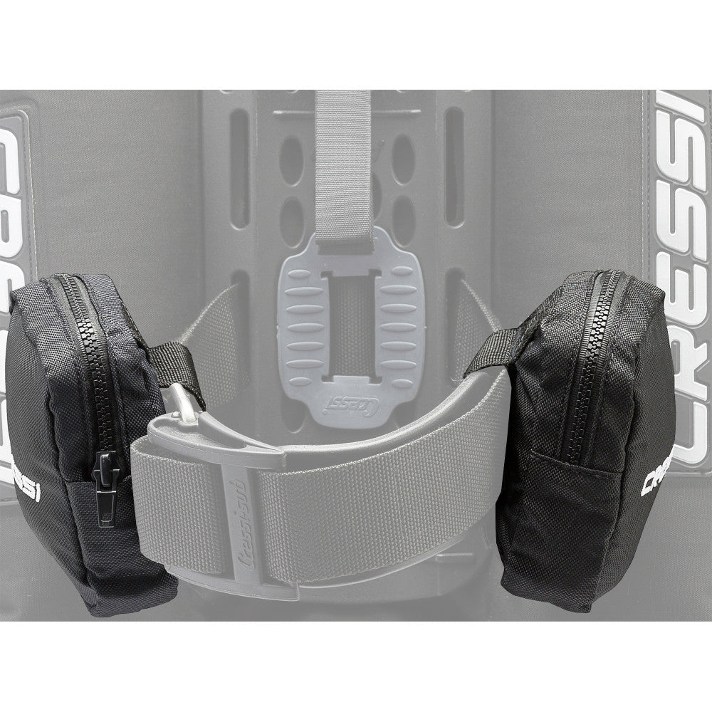 Adding Weight Pocket(s) to the BCD cylinder cam band can prevent excess cylinder buoyancy. By placing hard or soft lead in the weight pocket situated on your cylinder, the cam band will keep the cylinder from floating towards the end of a dive and can provide balance to the system for a more comfortable dive. It will also take some weight off the hips when diving with a weight belt. Pockets are made from durable nylon material with a zippered closure for security of weight.