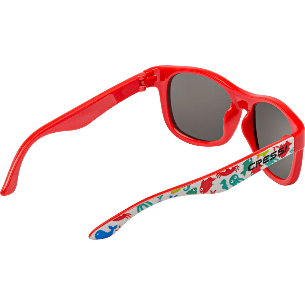 The Teddy sunglasses for children are robust and fun. They block reflections and protect against up to 100% of UV rays. They offer a sharp vision that's rich in detail while increasing visual contrast. They protect the eyes from solar radiation, filter out glare, and improve vision. Polarized lenses. Available in a broad assortment of colors. The mirrored lenses are coated with CRT (Cressi Revo Treatment) which improves mirroring and offers excellent performance in all light conditions. The mirrored lenses mounted on these glasses are treated with advanced REVO coatings that return excellent performance in different light conditions and any environment. The mirroring of the lens guarantees the maximum possible brightness and a high-definition lens. Cressi sunglass lenses are designed to protect your eyes from the sun, including near the water, and they shield against all UV rays, so you can savor the sunshine while enjoying comfortable vision. If your eyes are sensitive to the light, choose a dark shade. Lighter and gradient lenses are perfect for cloudy skies with little sunlight, while darker lenses protect your eyes in bright sunlight. The polarizing filter in the Cressi sunglasses guarantees a sharp vision free of reflections and glare. Cressi polarized sunglasses block harmful sunlight reflected from horizontal surfaces, such as water or a road surface while allowing vertical light to reach the eye. Vertical light is important for human eyes and improves vision. Cressi sunglasses have superior optical quality; they block reflections and protect against UV rays. They offer a sharp vision that is rich in detail and increases contrast, protecting the eyes from harmful rays. This combination improves comfort and decreases eye fatigue. Designed for kids aged 3 to 5 years.